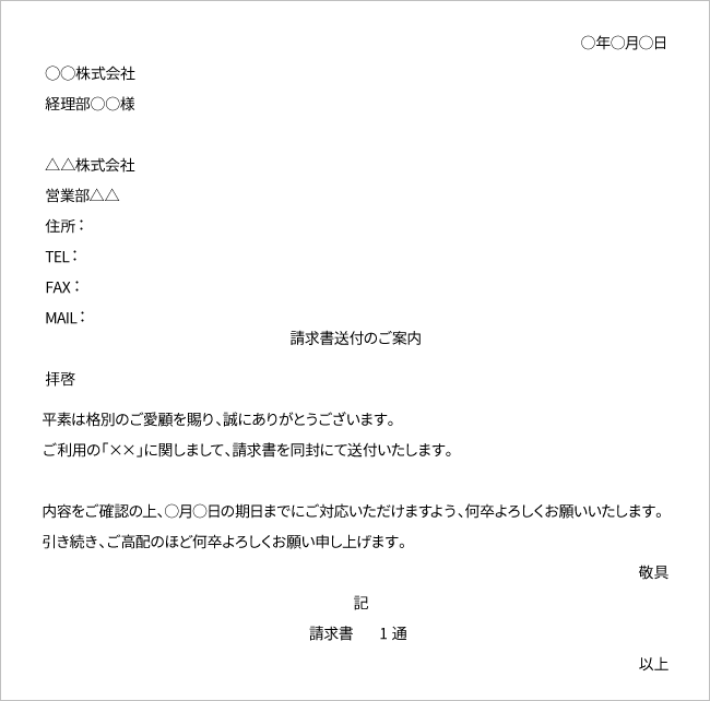 請求書の送付状の書き方 ルールやマナーを解説 Makeleaps